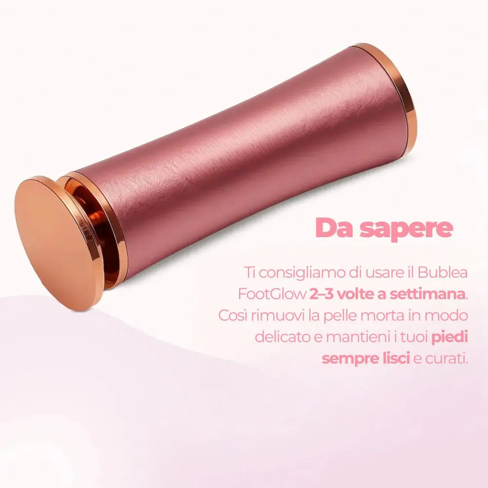 Passa FootGlow sulle zone secche o danneggiate (calli, ispessimenti, pelle morta) per ritrovare una pelle morbida come quella di un neonato.